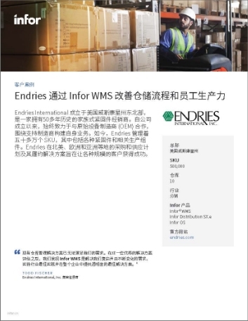 Endries 利用 Infor WMS 解决方案改进仓储流程并提高员工生产力